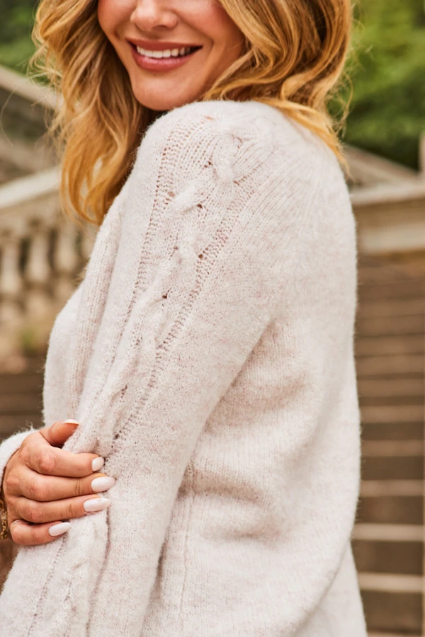 - Cable detail bell sleeves create a gorgeous silhouette